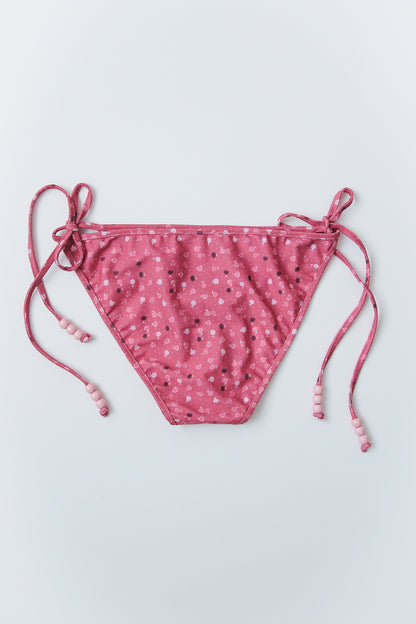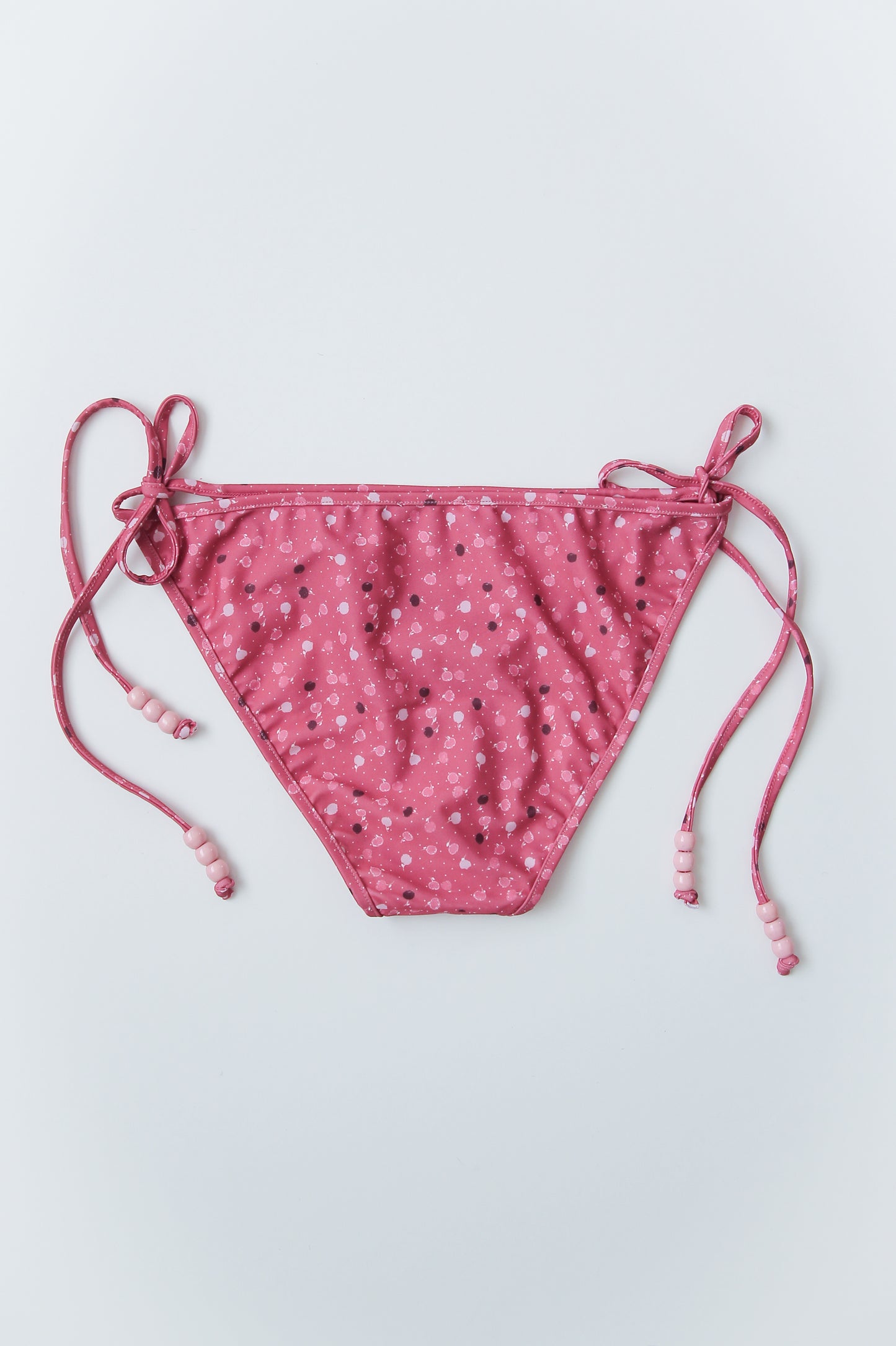 The Biarritz Bottom is a low waisted classic with an easy fit. There’s three beads on all the ends that adds a bit of flair. It is fully lined and thus not transparent when wet.